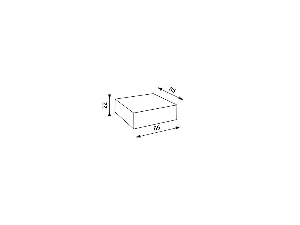 Rozměry: výška 22 cm, šířka 65 cm, délka 65 cm, hmotnost 2 kg